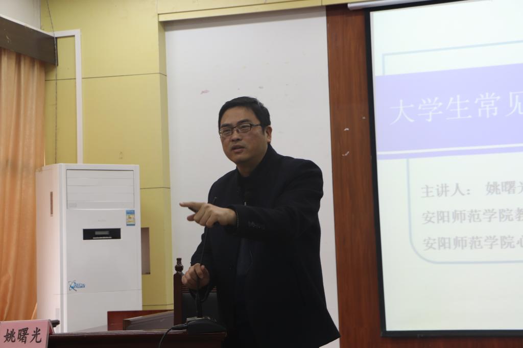 姚曙光老师首先介绍大学生常见心理问题,重点讲解了焦虑症、强迫症和抑郁症的症状、特点和治疗方法。接着,姚曙光老师围绕“神经症”“神经病”“精神病”的区别展开说明,结合个人经历和丰富的案例,通过幽默风趣的语言,将心理学知识生动形象地介绍给同学们。全场气氛轻松活跃,到场心理骨干认真聆听。姚曙光老师最后强调心理委员的职责:一是识别存在心理问题的同学并做好上报工作;二是积极宣传心理中心,鼓励需要心理援助的同学卸下防备,走进中心,寻求帮助。