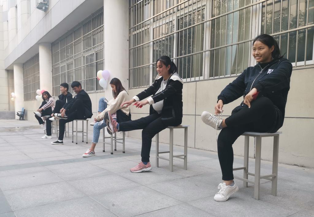 孕育体验区,一位位“准妈妈”在现场工作人员的帮助下开启了她们的孕育之旅,捡乒乓球、系鞋带、起床等简单的日常小事在此刻也变得如此艰难。经济学院张冰杞说:“通过孕育体验,我深刻了解到了作为一位母亲的不易,在今后的生活中我一定会以实际行动回报母亲,给予她更多的温暖与体谅。”